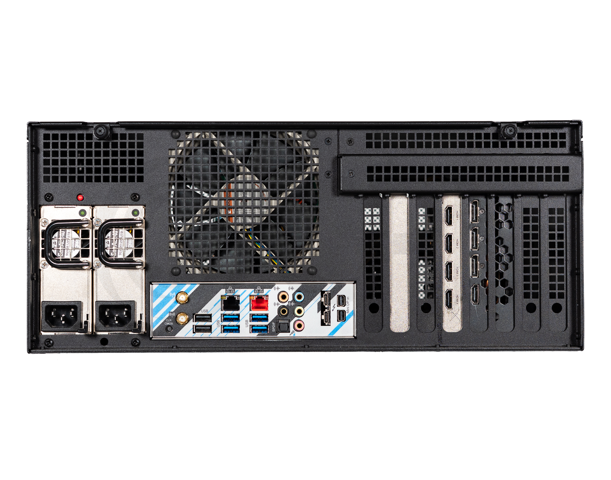 Housed in a 4U rackmount chassis, the unit integrates cleanly into production setups at front of house, in control rooms, or within dedicated streaming positions. The RTX 3070 enables efficient encoding and decoding, supporting high-quality streaming outputs and multi-layered productions, while the i9 platform ensures stable performance under sustained load.